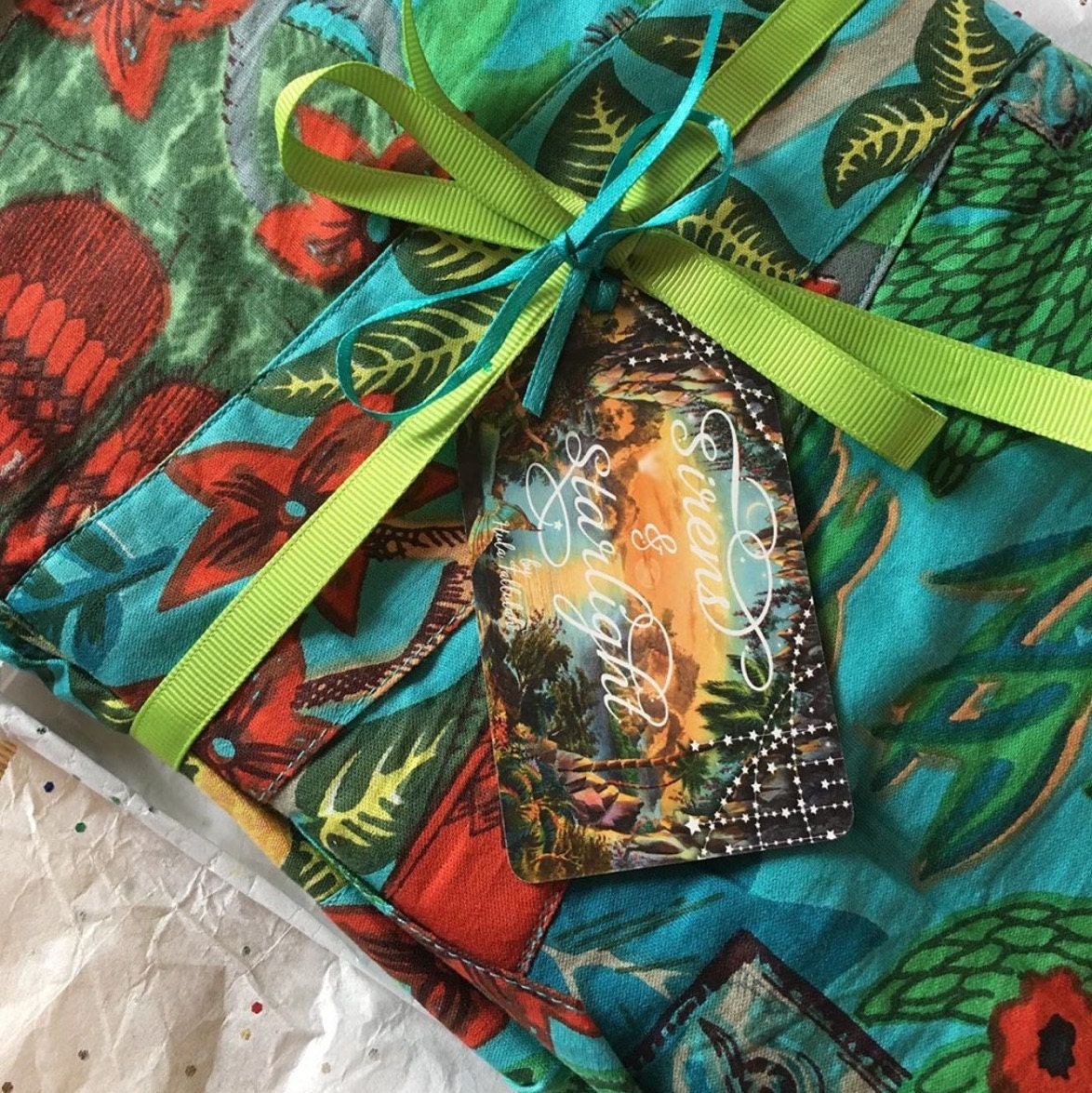 This beautiful print is inspired by and celebrates the wonder and beauty that is Frida and her art and culture. Printed on soft supple Indian Cotton this piece can be worn as a layering piece over a tee with jeans, as an open kimono, a beach cover up, a robe, and on and on. It’s the multi purpose piece your wardrobe as been missing. This fun bohemian print will have you harnessing your inner Frida.